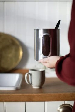 De voorraadpot van Aida heeft een handgemaakt ontwerp van verbrande aardewerk met een trendy kleur. Het heeft een Scandinavische en ruwe look met een krasbestendige afwerking. Elk item is uniek door het handgemaakte design.