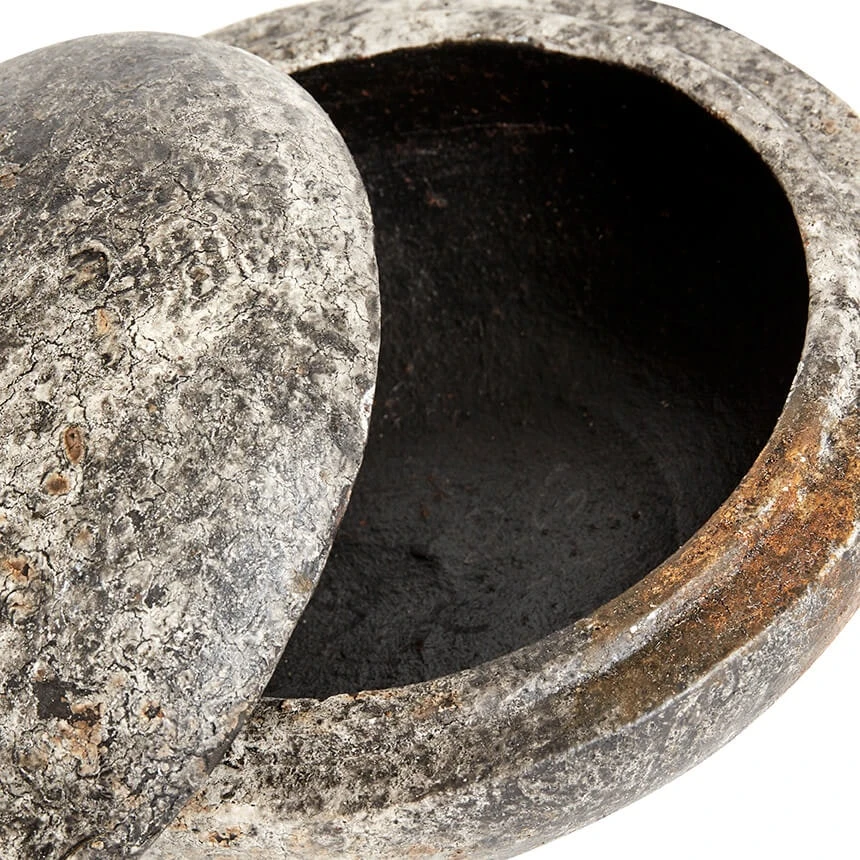 De bonbonniere van Muubs heeft een rustiek ontwerp van terracotta met een levendig en roestgrijs oppervlak, perfect om dingen op te bergen. Kies uit verschillende maten.