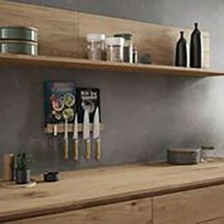 This knife block from RIG-TIG has a smart and stylish design that helps you store your knives on the best way. The block itself is made of melamine and stands firmly on the kitchen counter, and the top is made of bamboo with seven slots.